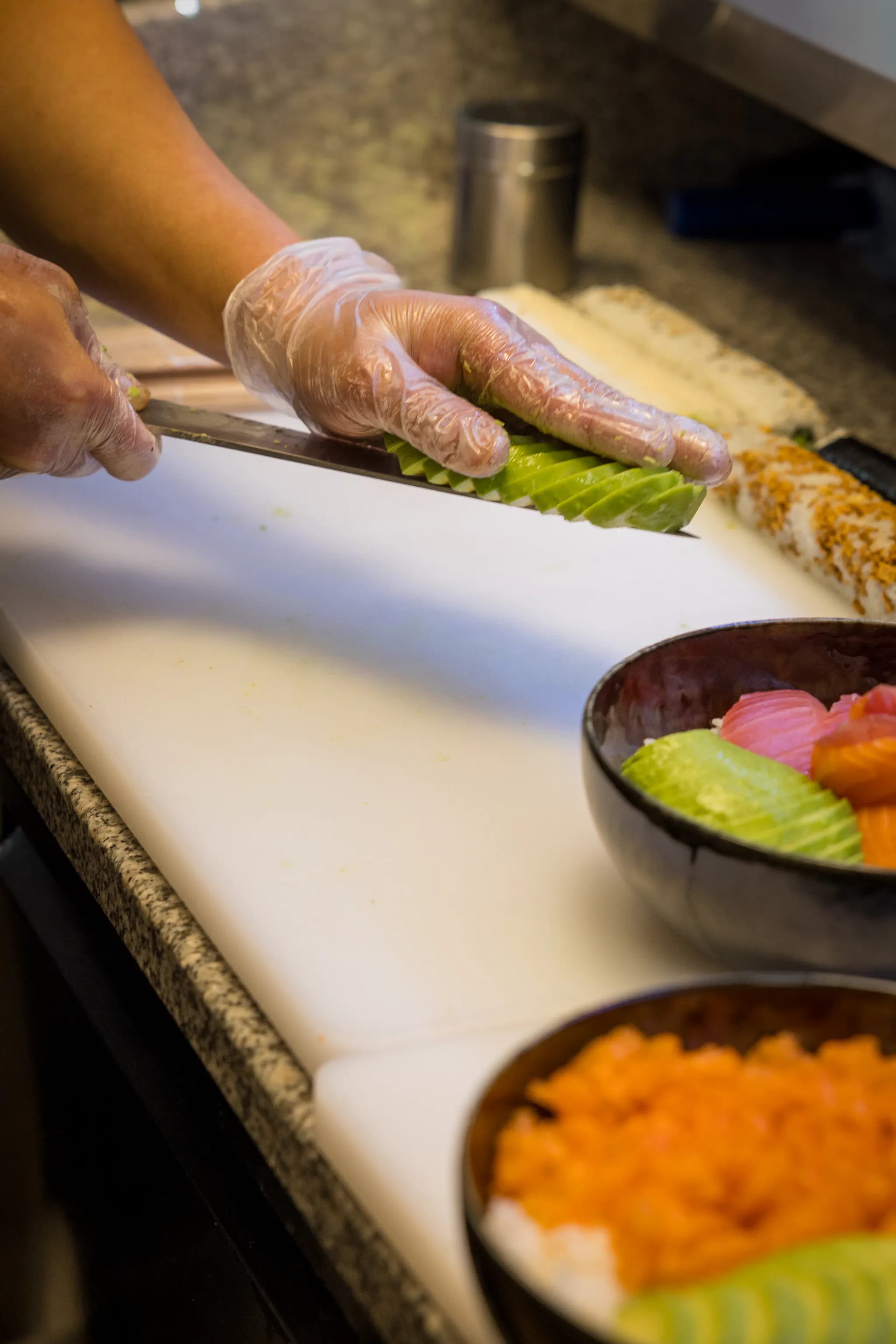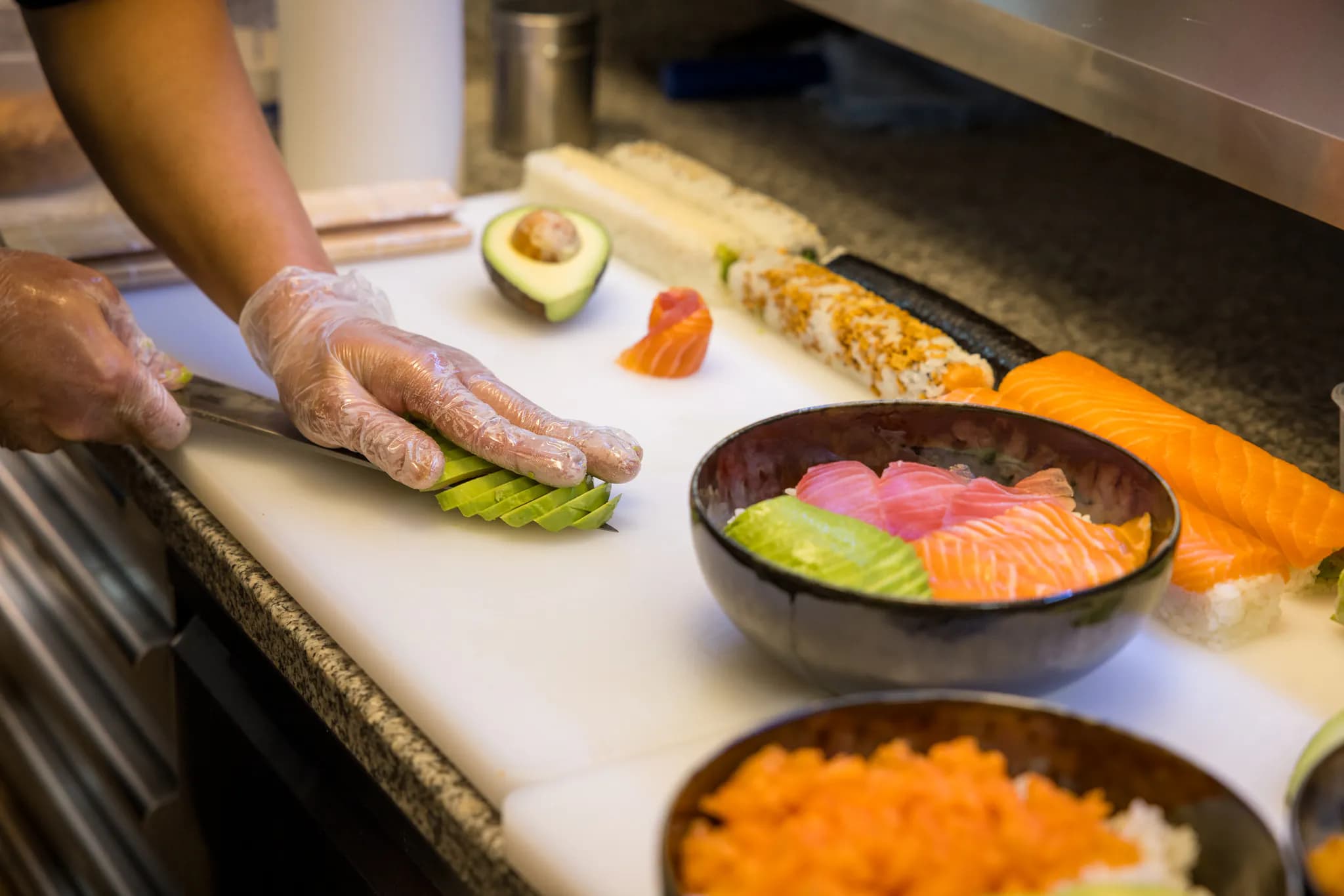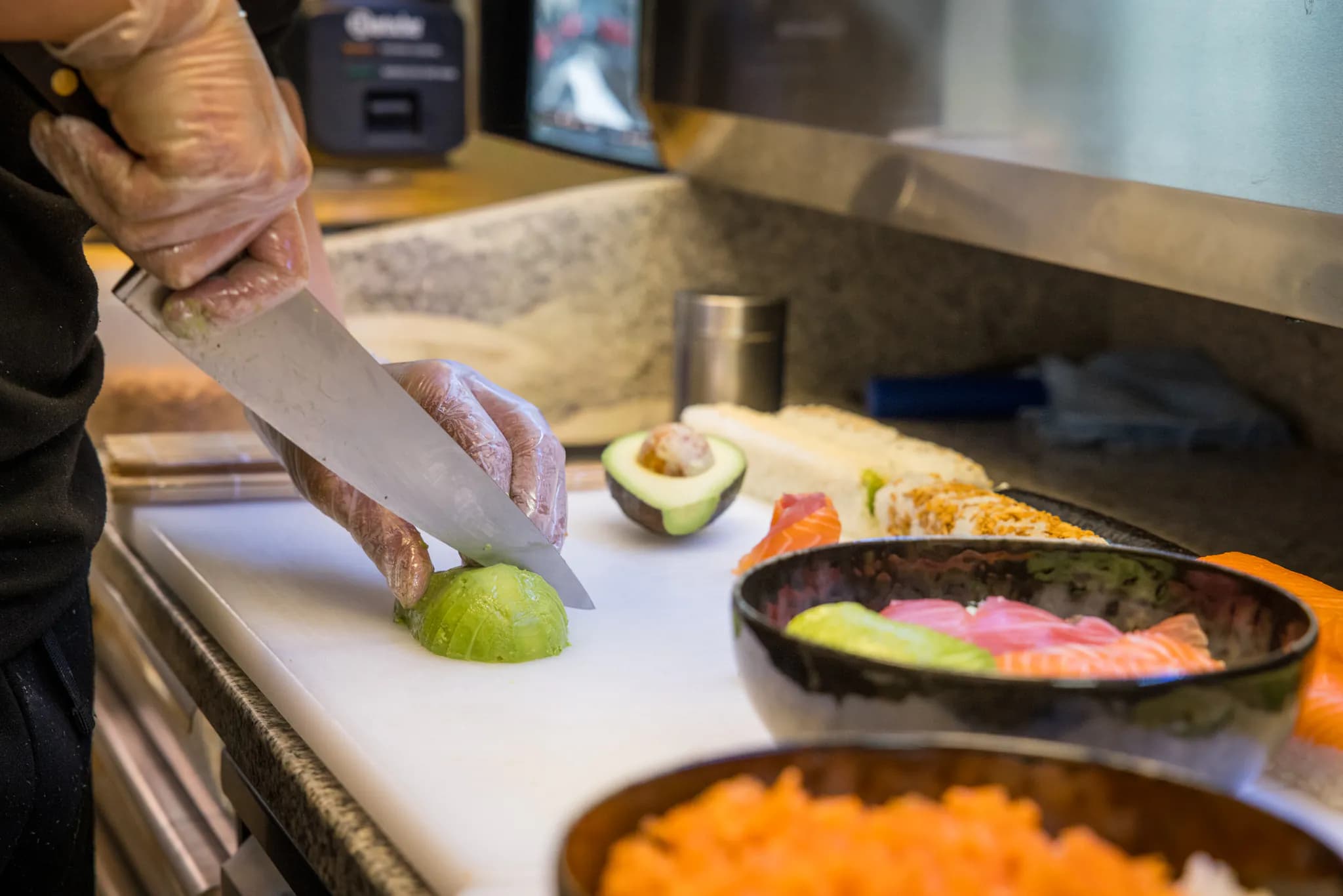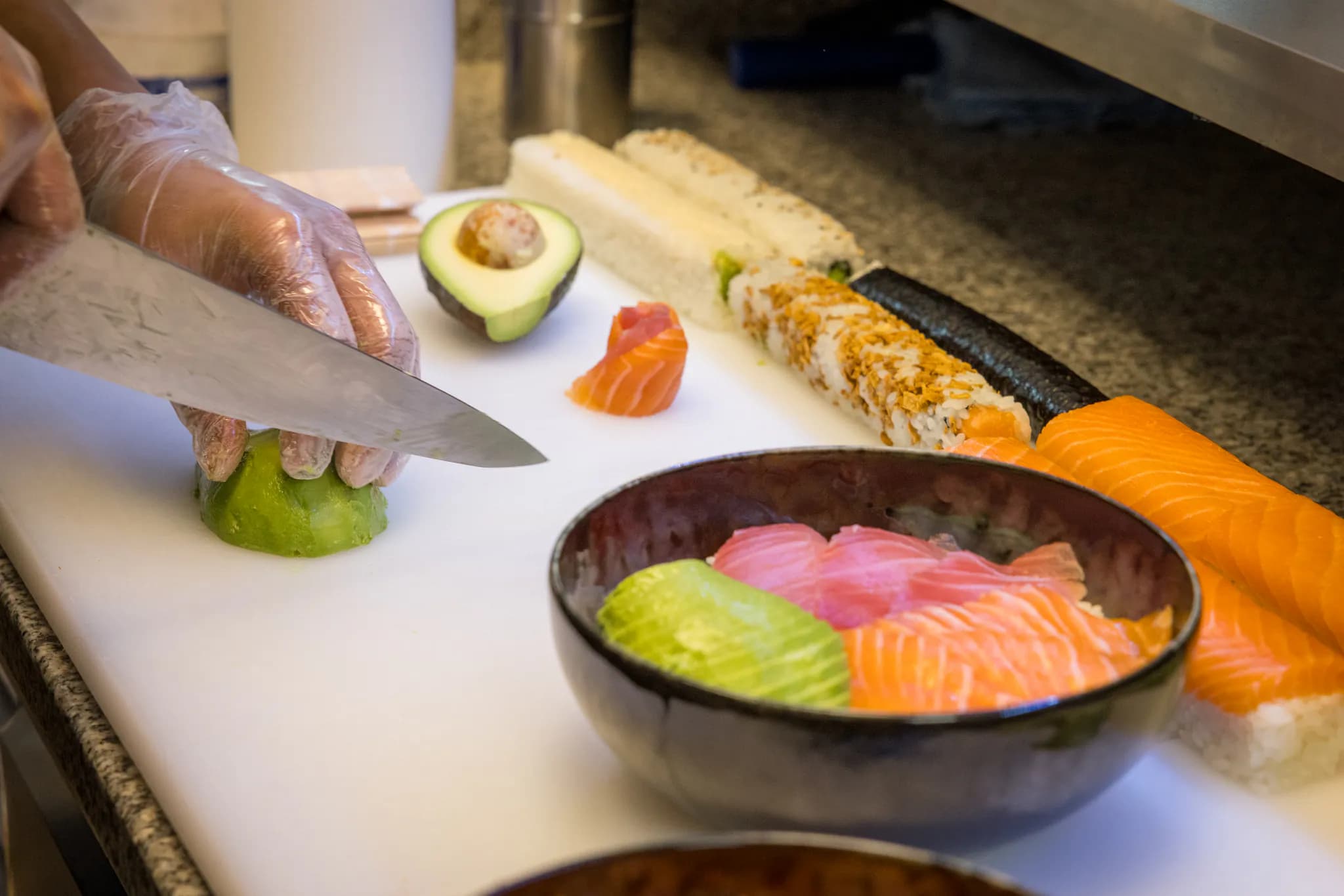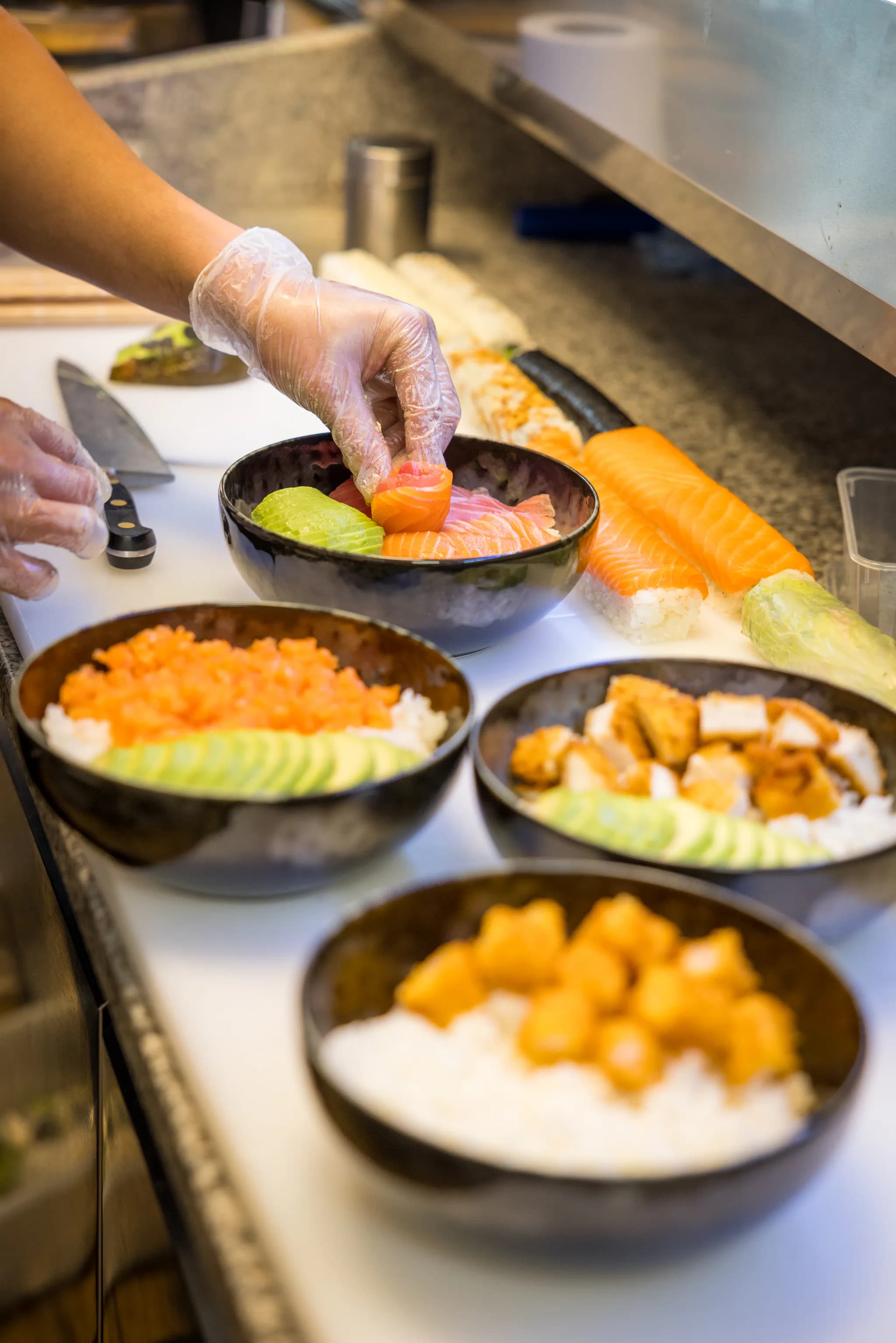 20 ans de lame, riz japonais cuit au quotidien, poisson taillé devant vous.